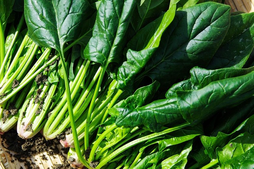 세 번째는 시금치입니다. 시금치는 비교적 부드러운 식감의 채소이지만 식이섬유와 다양한 미네랄을 포함하고 있습니다. 철분과 마그네슘 등 다양한 영양소를 함께 섭취할 수 있는 장점이 있습니다.